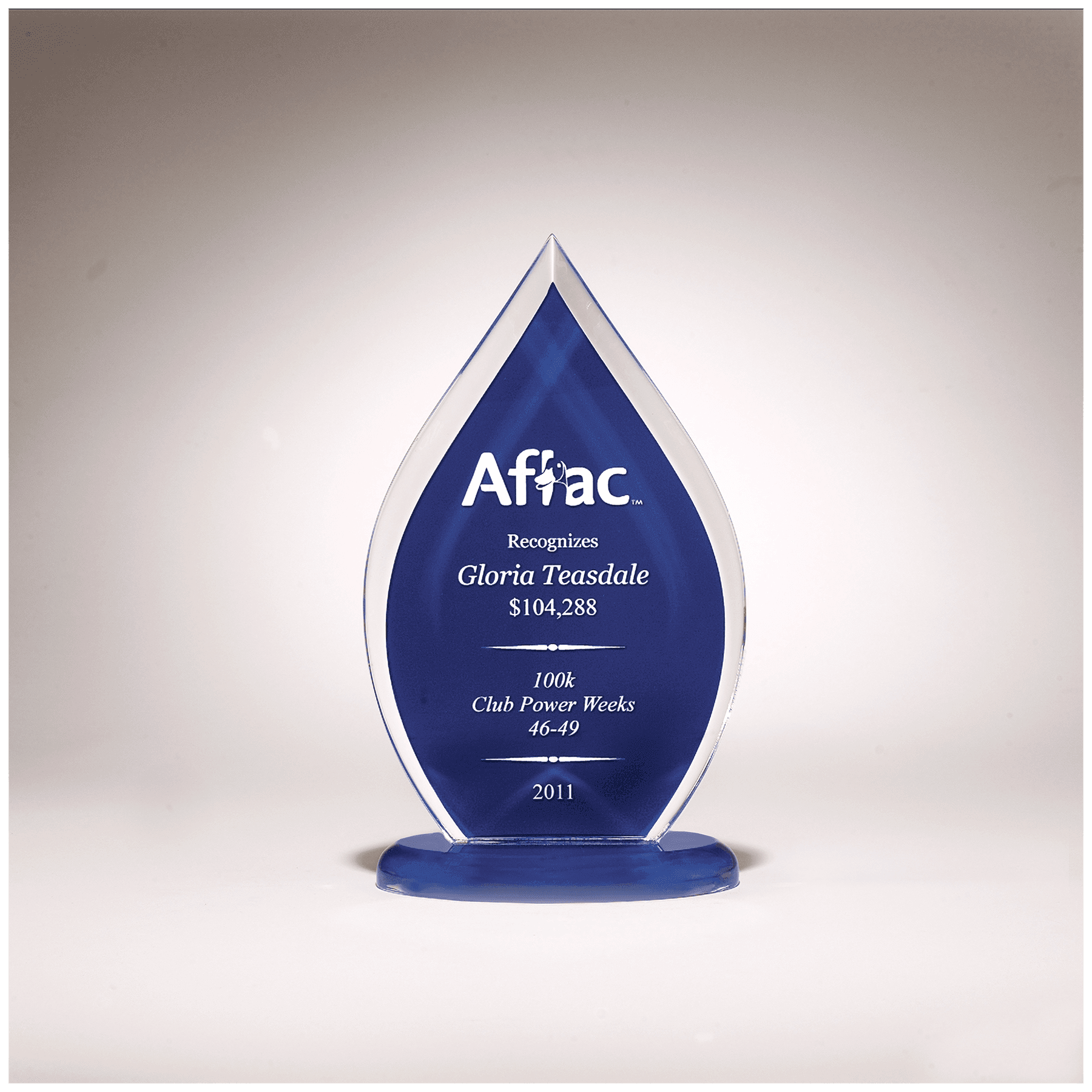 Flame Series Acrylic Award with Blue Silk Screened Back.